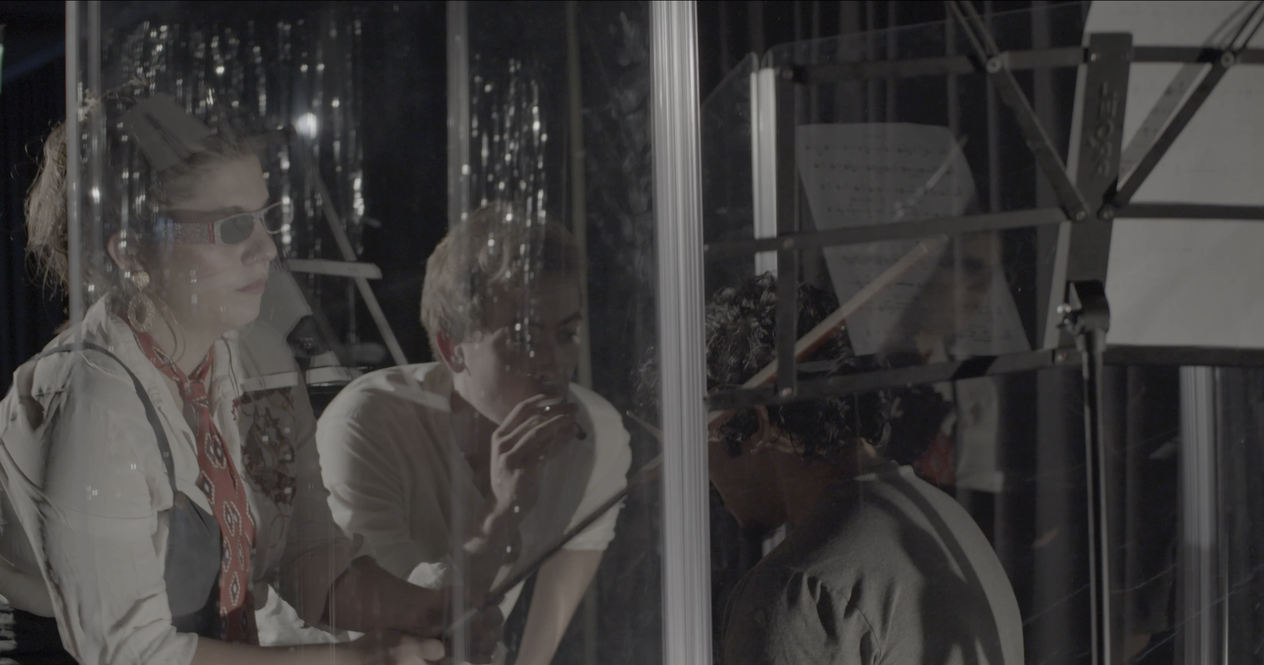 One at a time, audience members are sent through a shiny 'new year's door' into the next room. There, they experience 'miniatures' that are heard only acoustically and at close proximity. Each person gets a different miniature, depending on when they're sent through from the first room.